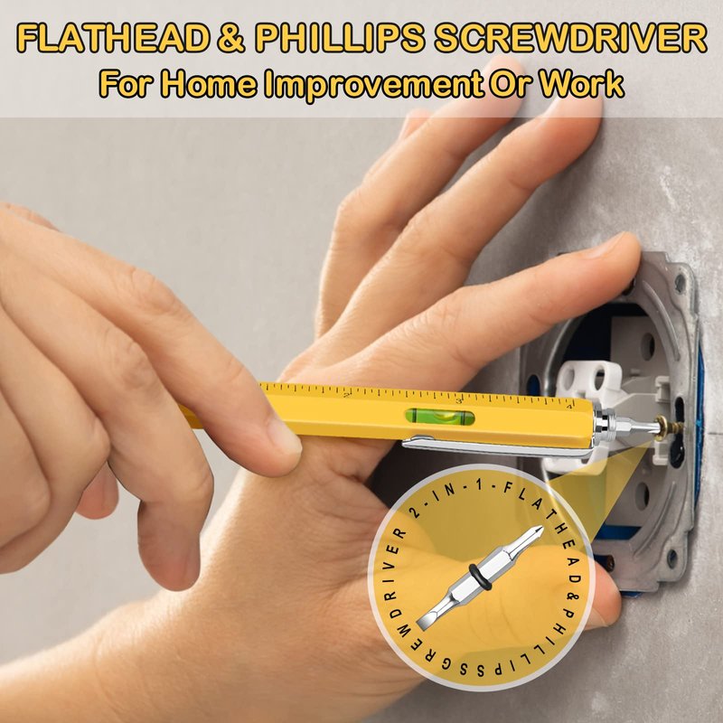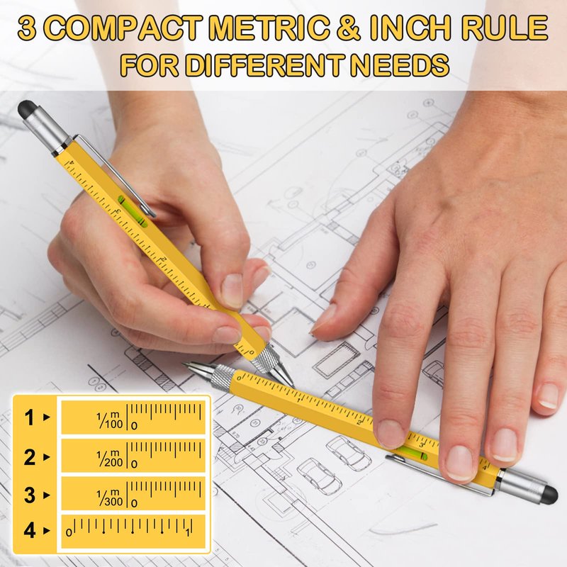- 6-IN-1 MULTITOOL PEN: The multi-tool pen comes with 6 very convenient and practical functions: retractable ballpoint pen/ ruler (inch & cm)/ screwdriver (flat & phillips)/ stylus/ level, is pretty cool gadgets for men.