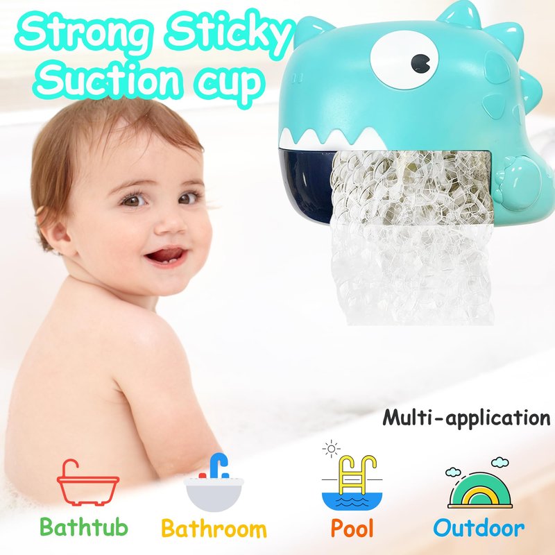 - 【Automatic Baby Bath Toys】Dinosaur bath toys contains 250ml capacity, built-in powerful motor can automatically generate lots of bubbles,quickly fill entire bathtub soon. Cartoon dinosaur image and bubbles bring more fun to help solve the problem of children's rejection of the bath!
