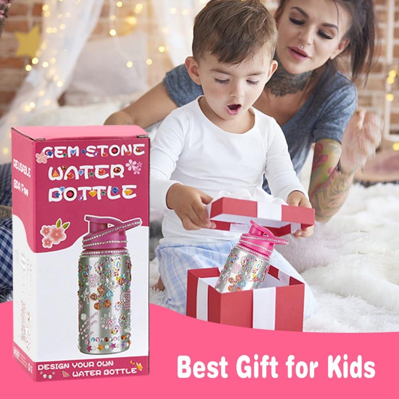 Valentines Day Gifts for Kids, Gift for Girls, Decorate Your Own Water Bottle for Girls, Gem Stickers for Kids Age 5-9, Gifts for 6 + Year Old Girls DIY Toys Arts and Crafts Kit Ideas Birthday
