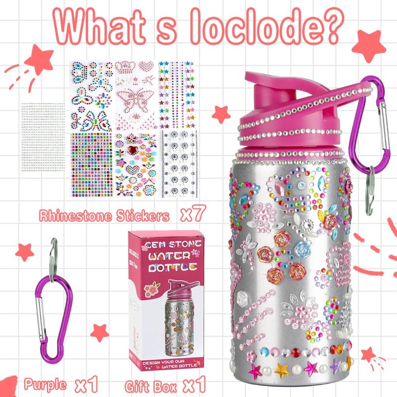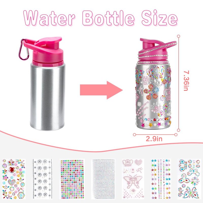 - Package includes: It comes with 7 sheets of our sparkly rhinestone glitter gemstone stickers, A carabiner to hang the bottle and a aluminum decorate your own water bottle, Gem diamond sticker is made of quality resin material, non-toxic, odorless and will never fade. Our aluminum, BPA free, non-toxic, odor free 500mL water bottle, It’s also lightweight so easy for a child to carry around