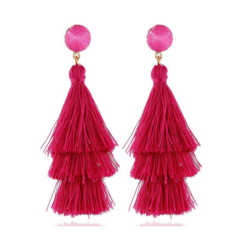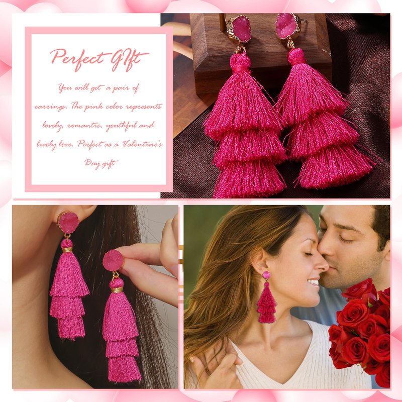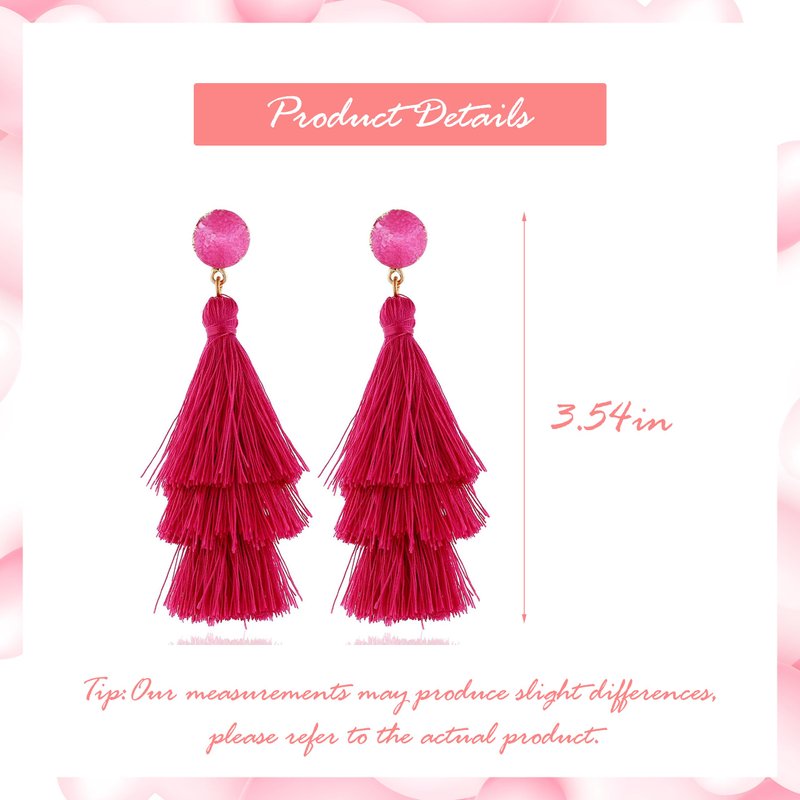 Pink Earrings for Women Layered Tassel Earrings Tiered Dangle Tassel Earrings Bohemian Drop Stud Earrings Hot Pink Earrings Jewelry for Teen Girls