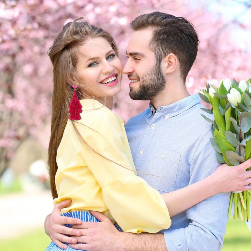 - Tiered Tassel Style: Embrace the playful vibe with our tiered dangle tassel earrings. The layered design adds depth and movement to your appearance.