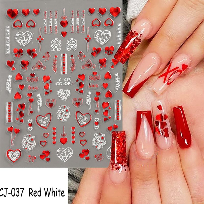 - 💋 Package Include: 6 Sheets Valentine’s Day series 3D self-adhesive nail stickers