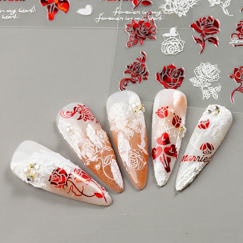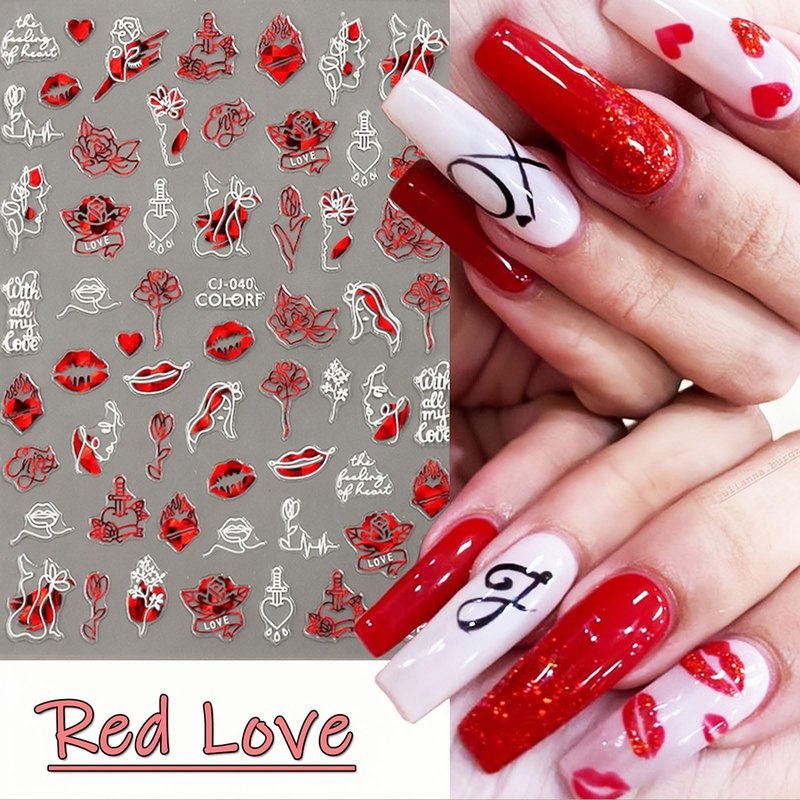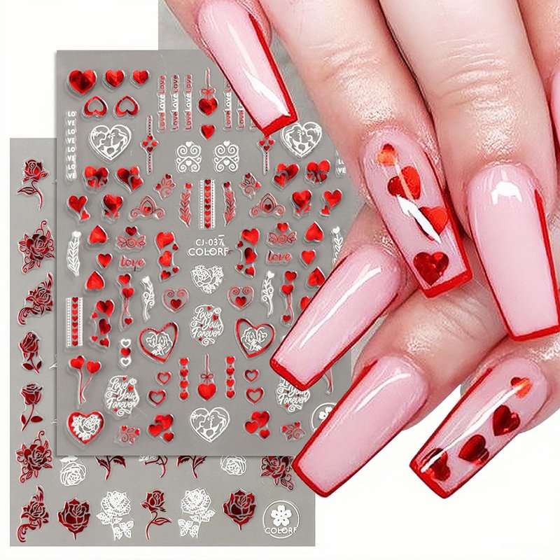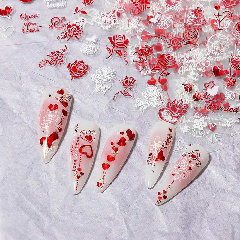 - 【EASY TO USE】-- The romantic love design nail decals are self-adhesive, just choose your favorite pattern and stick the nail stickers on your nails, toe nails, fake nails, etc.