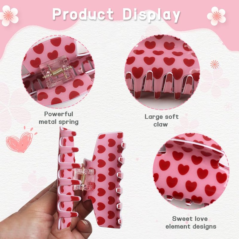 - Sweet Red Hearts: This hair claw clip features sweet red heart designs, bringing a romantic Valentine's Day touch to women and girls.