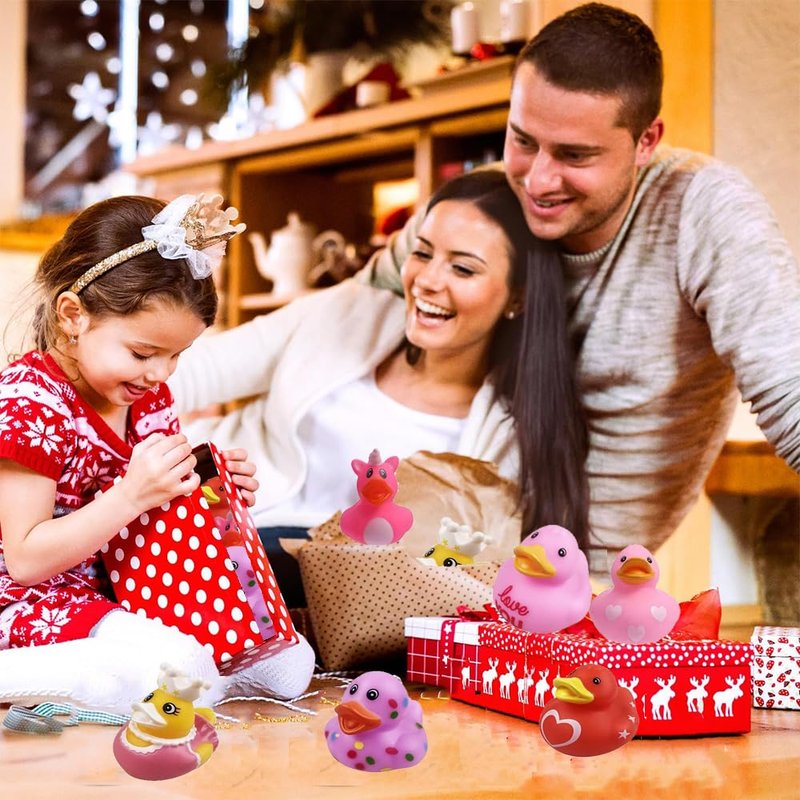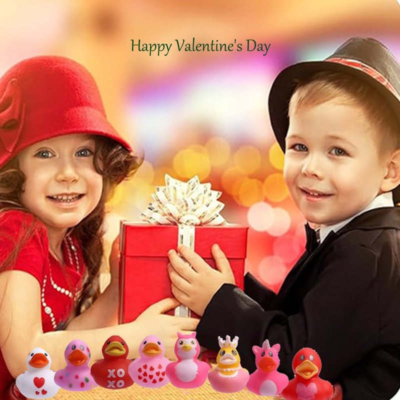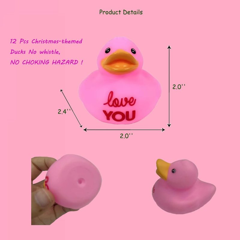- Valentine's Day Rubber Ducks in Bulk:You will get 12pcs Valentine's Day-Themed Ducks,and each rubber ducky is unique character, style.They are pink or red, printed with heart-shaped patterns or Valentine's Day related phrases.Everyone can find their favorite styles from these rubber ducks!