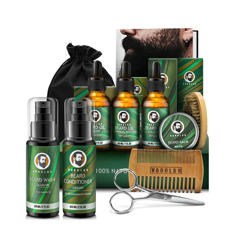- Unique Gifts for Men: Varolan beard kit is the perfect choice for a man's birthday gift, especially for those with beards. This beard grooming kit for men includes ten sets of advanced beard care products. From natural beard conditioner to moisturizing oil, every product has been carefully designed to nourish and soften the beard and enhance its overall appearance and texture. Show him your thoughtfulness and concern by giving this customized gift to meet his unique personal care needs