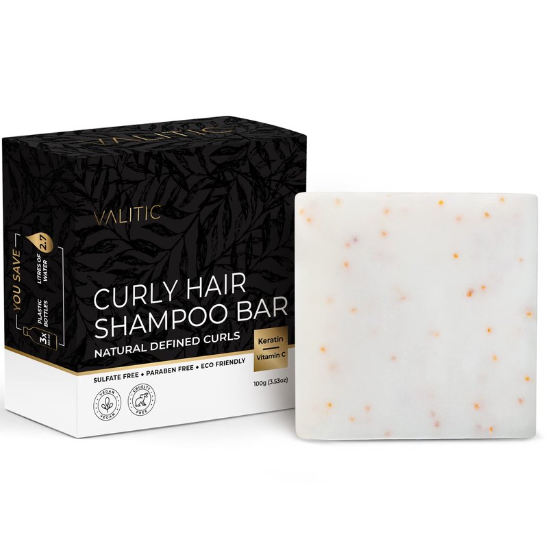VALITIC Natural Shampoo Bar for Curly Hair - Curl Defining Shampoo Bar Hair Care - Hair Tamer for Frizzy Hair - Vegan Eco Friendly - Natural Vitamin C & Keratin