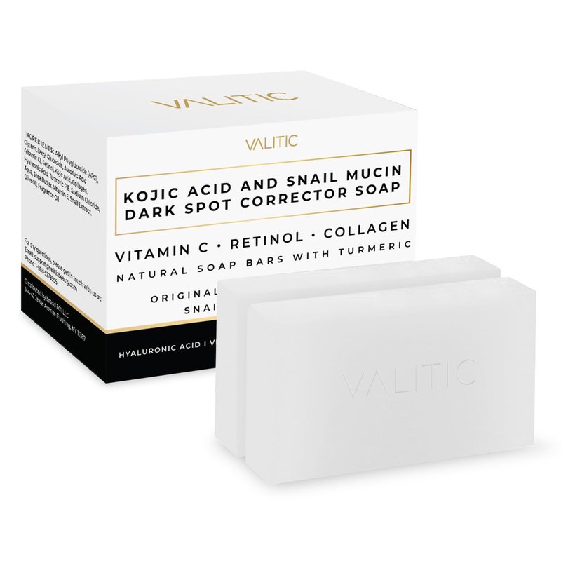 VALITIC Snail Mucin Kojic Acid Bar Soap Dark Spot Corrector – with Snail Secretion for Intense Hydration and Moisturization – 2 Pack