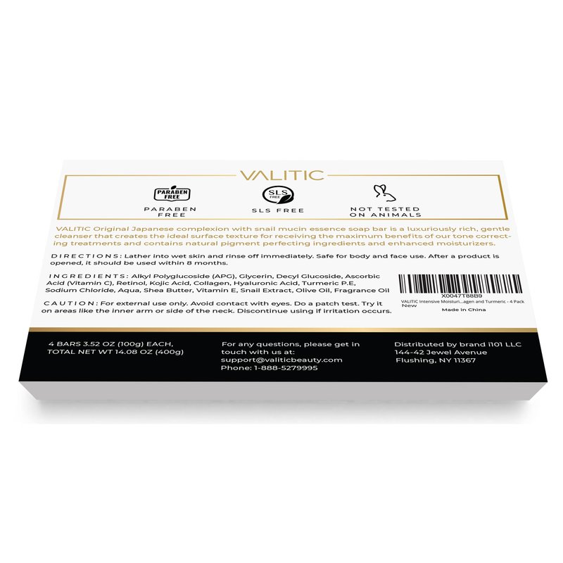 VALITIC Snail Mucin Kojic Acid Bar Soap Dark Spot Corrector – with Snail Secretion for Intense Hydration and Moisturization – 4 Pack
