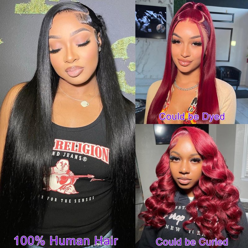- Straight Lace Frontal Wigs Advantage:13x4 Swiss Lace Straight Wig Around, Tangle&Shedding Free, Healthy&Natural, No Smell, 180% Density, 9A Pre Plucked Hairline with Baby Hair, Can be Premed, Curly ,Bleached, Dyed and Restyled