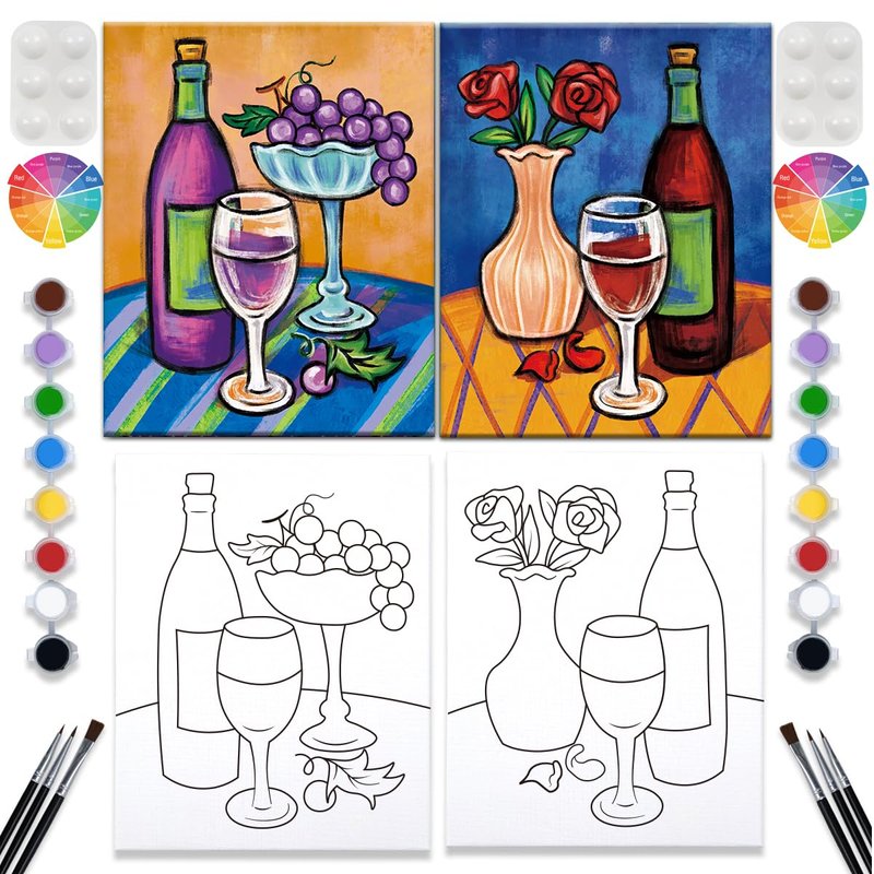 - Date Game:Sip and Paint Kit for Adult's Date Night, paint and sip at home, birthday party,indoor outdoor backyard entertainment, virtual zoom meetings.valentine's day gift.couples paint night kit.Anniversary Activity.