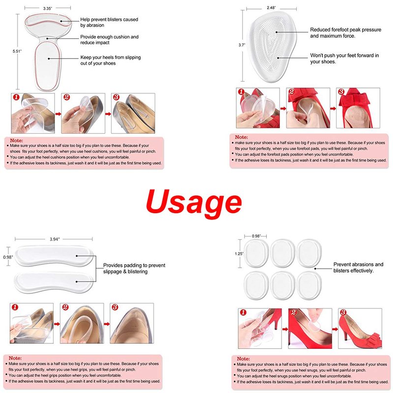 1.Soft silicone heel pads reduces the friction between shoes and feet to avoid foot pain and blisters after a long walking, dancing, running, or shopping.