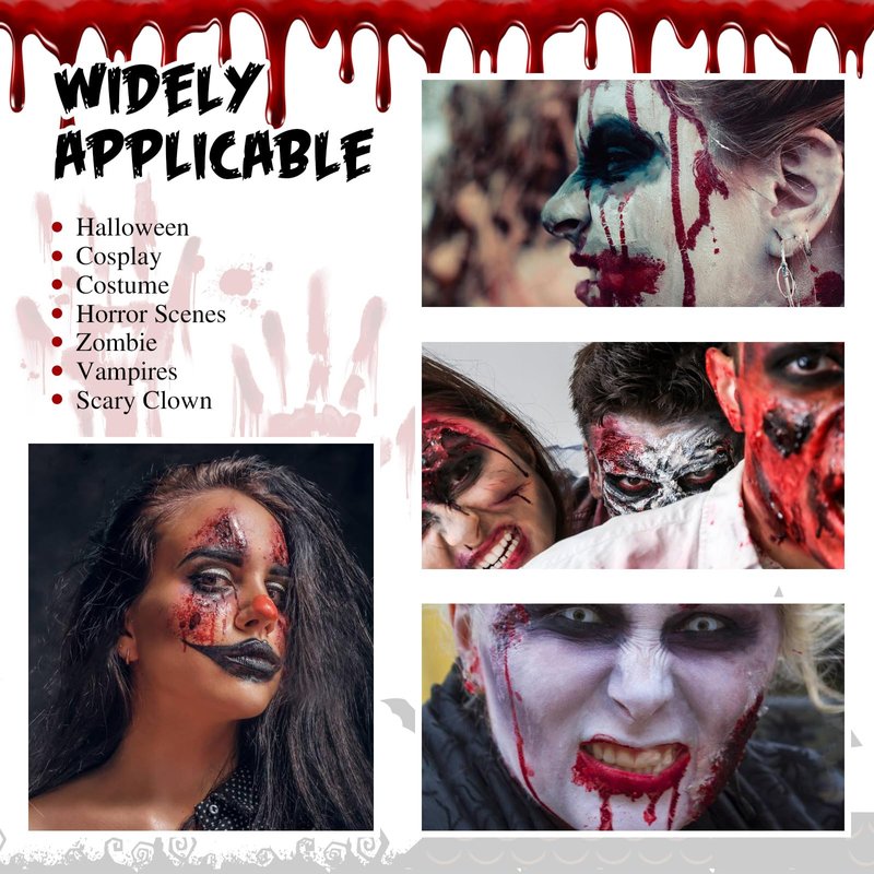 - √ Applicable Occasions: Perfect for Halloween SFX makeup, haunted house, cosplay, zombie makeup, stage effects, masquerade, movie effects, horror scenes and more.