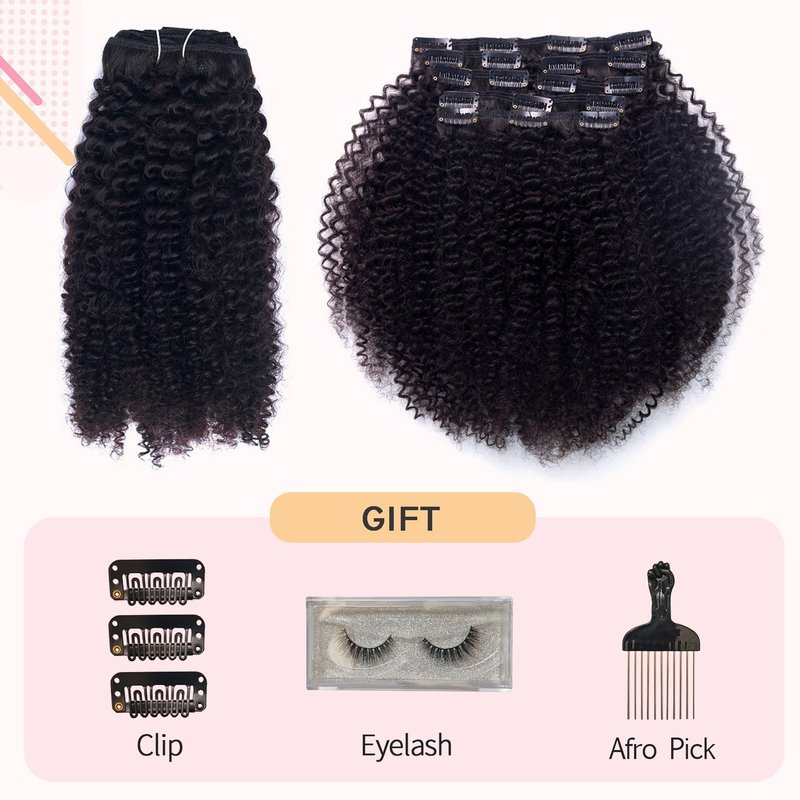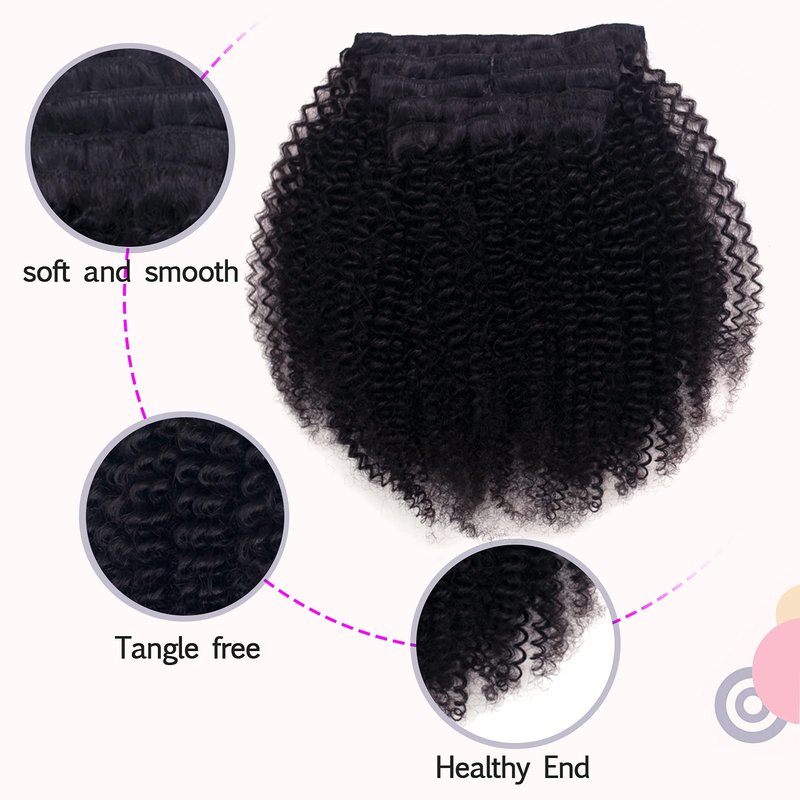 Vanalia 3C 4A Clip Ins, Afro Kinky Curly Clip In Hair Extensions, 3C 4A Clip ins for African American Black Women,9A Brazilian Remy Hair Double Wefted Natural Black,120 Gram 18Inch