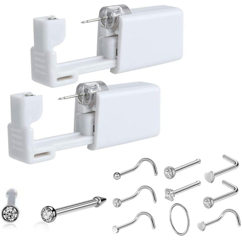 - Product List - The piercing kit includes 2 pcs piercing gun, 10 pcs nose studs.