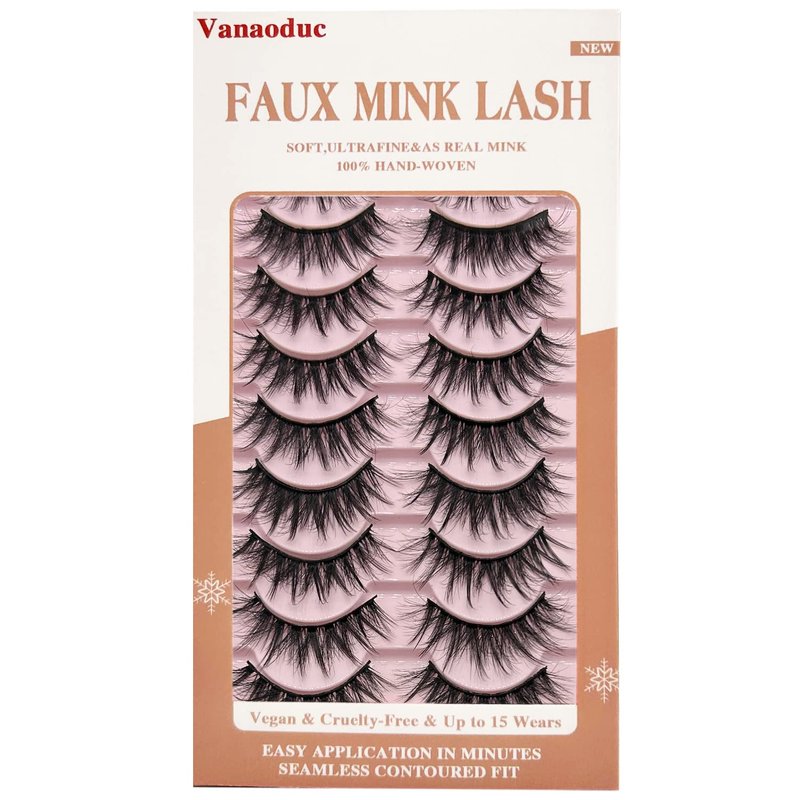 VANAODUC Eyelashes False Lashes Natural Look,Wispy Eyelashes Round Mink Lashes Long 15-22MM False Eyelash Strips 10 Pairs Pack, Fake Eyelashes Lightweight & Comfortable, Reusable, Cruelty-Free