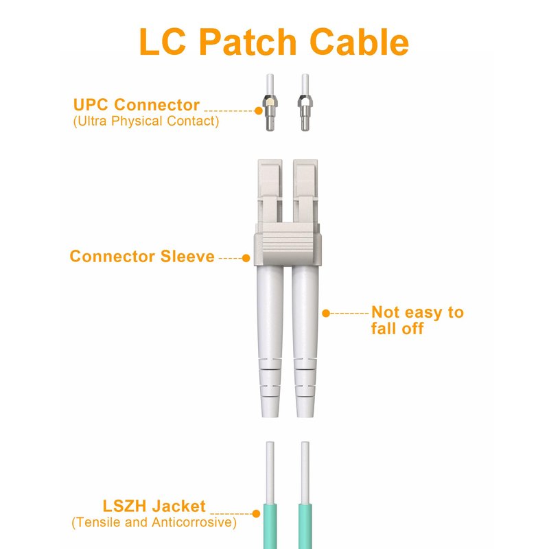 - HIGH QUALITY MATERIAL —LC TO LC Fiber Patch Cable body is made of PVC/ LSZH plastic materials, which is shiny, tough, environmental protection, not fade, not broken and not easily deformed. The inside optical cable is aramid, which is tough, tensile, non-toxic, fire retardant, core protection and low smoke. The connector is PBT plastic materials and fine copper, which is firm, durable, environmental protection, high temperature resistant, not fade, not broken and not easily deformed.