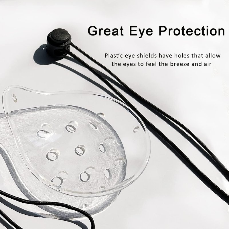 - Easy to Use: After you receive the parcel, please attach the straps and tie knots to the eye shield, then wear with adjustable elastic rope. And we can also use tape to keep the plastic holes eye shields in place. Easy adjustable to fit just right.