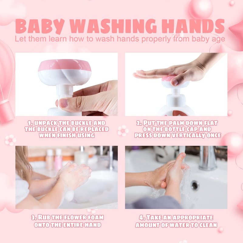 - 【Flower Shaped Hand Cleaning Foam】Press flower soap dispenser comes with "flower", the baby can't put it down. Each pump dispenses the perfect amount of foaming hand wash in the flower print shape of a furry friend. Advanced foam technology requires no water to lather and rinses cleanly and completely.