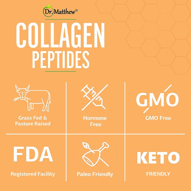 - HEALTHIER SKIN, RADIANT AND YOUTHFUL APPEARANCE: Dr. Matthew’s collagen peptides powder vanilla helps restore your skin’s natural moisture, elasticity, and smoothness. This collagen vanilla features pure low molecular weight peptides. Such peptides have been clinically shown to support the health of your skin, bones, cartilage, ligaments & tendons. They reduce aging lines and wrinkles. Give yourself a glowing face, healthy hair growth & strong nails.
