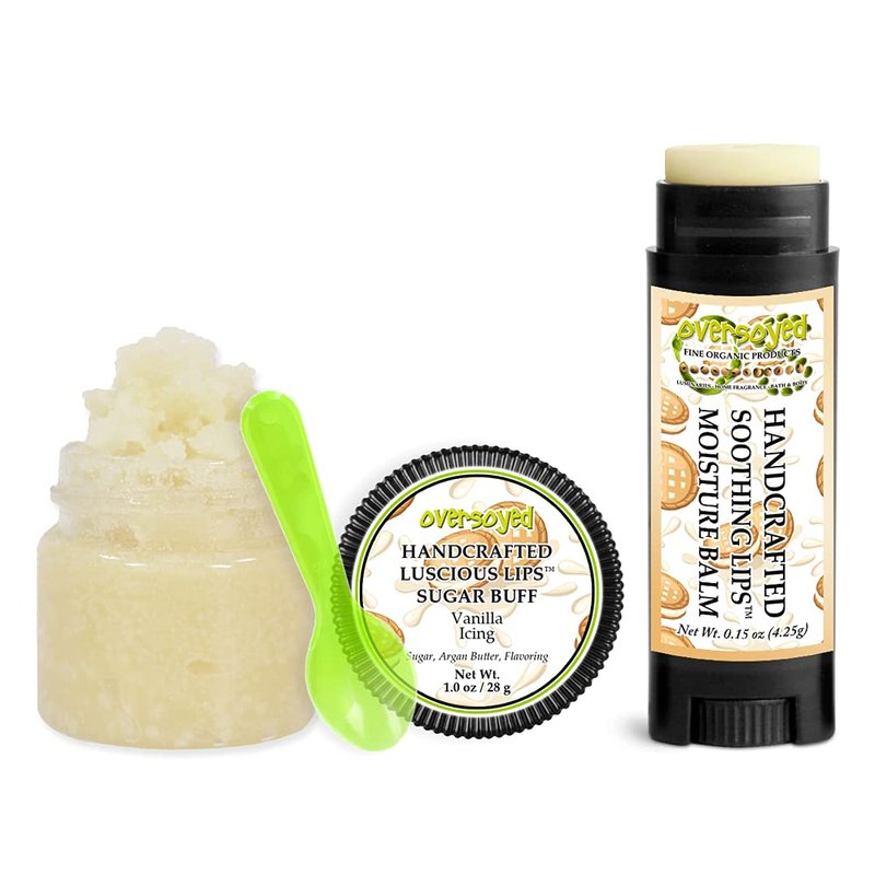 - Once you've achieved soft, kissable lips with our OverSoyed Luscious Lips Sugar Buff Scrub, you'll want to protect them from the elements and keep them moist. Our Soothing Lips Flavored Moisture Balm provides a smooth layer to nourishing comfort while soothing dry lips with lasting moisturization. Our formula of all natural oils and ingredients will leave your lips silky soft.