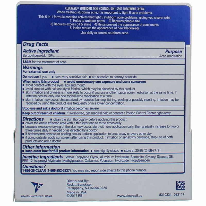- Dermatologist Tested: Clearasil Stubborn Acne Control 5-in-1 Spot Treatment Cream is a tested cream, designed to be used as acne medication