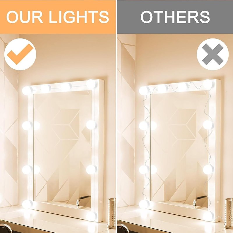 - EVENLY FILL LIGHT, MAKE MAKEUP MORE DELICATE: Hollywood style led vanity mirror lights ,10 light bulbs can be combined at will, evenly fill light from multiple angles, makeup has no dark corners and no shadows, and the details are clearer, avoiding the embarrassment of inadequate makeup caused by insufficient light, which is every beautiful girl Must-have.