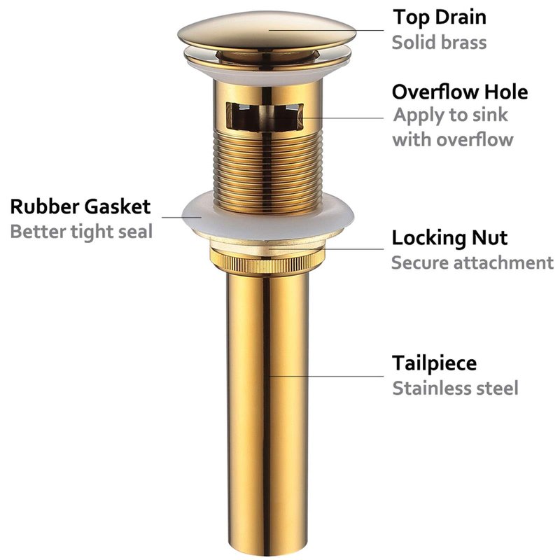 - PUSH DOWN DESIGN: convenient push-button makes easier to drain or fill the water, not easy to clog, simply unscrew the stopper to clean.