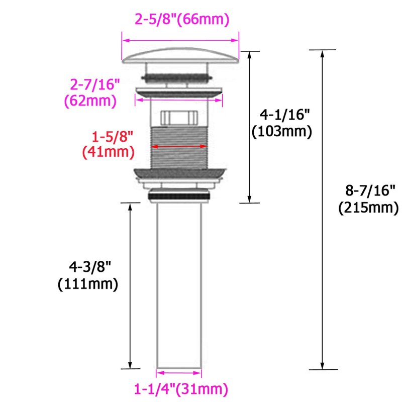 - FITS MOST SINK: our drain stopper is applicable to bathroom sink/vessel sink with overflow hole, fits drain hole diameter of 1-5/8" (minimum dia. required)