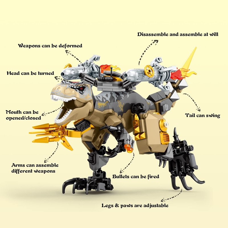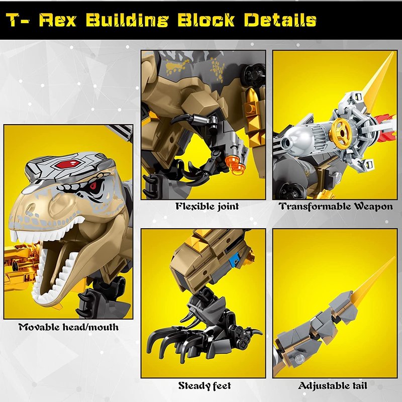 - Cool Desktop Decorations: This Transformable dinosaur building block is different from ordinary dinosaurs; When it becomes an upright steel mecha T- rex, it will be a unique decoration