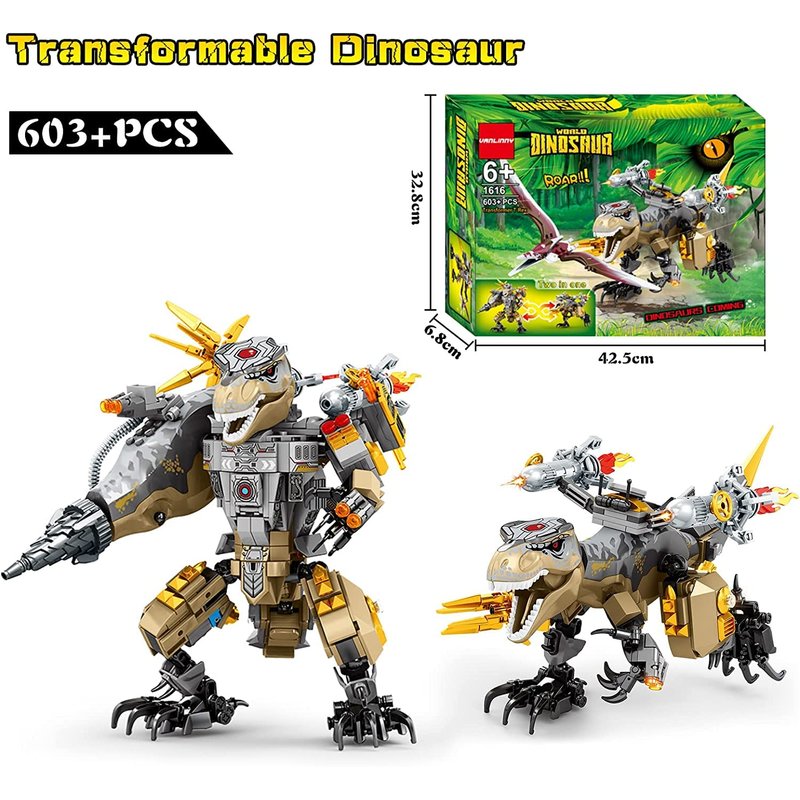 VANLINNY Dinosaur Building Blocks Toy 603 Pcs,2 in 1 Dinosaur Sets for Kids Aged 5 and Up,It Can be Transformed into T-Rex & Aeolian Pterosaur and Compatible Other Blocks,XmasToy for Boy&Girl.
