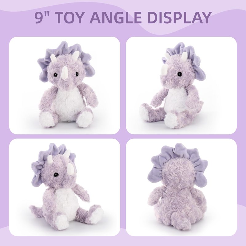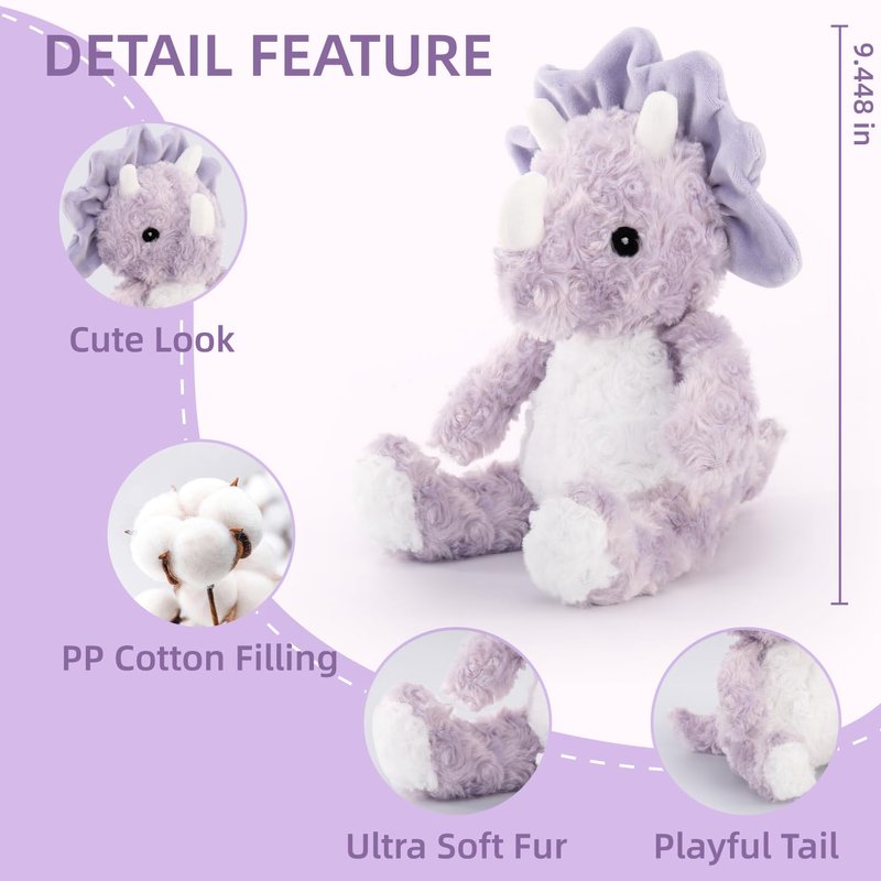 - [Stuffed Animals for Girls]: We focus on making children unique and warm furry playmate. The purple triceratops stuffed shape is super adorable, just like a cute baby, conduciving to stimulating children's rich imagination and creativity.