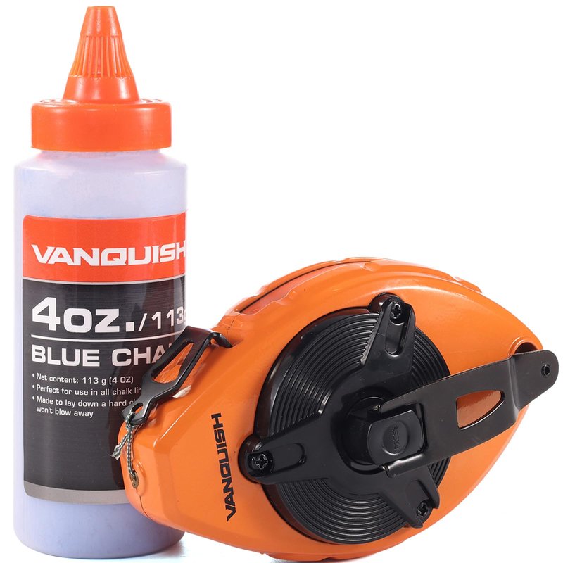 VANQUISH 2 Piece Aluminum Chalk Line Reel 100 Ft. with 4 Oz Blue Chalk Carpenter Construction Chalk Tools 5 to 1 Gear Ratio for Quick Rewind (4301)