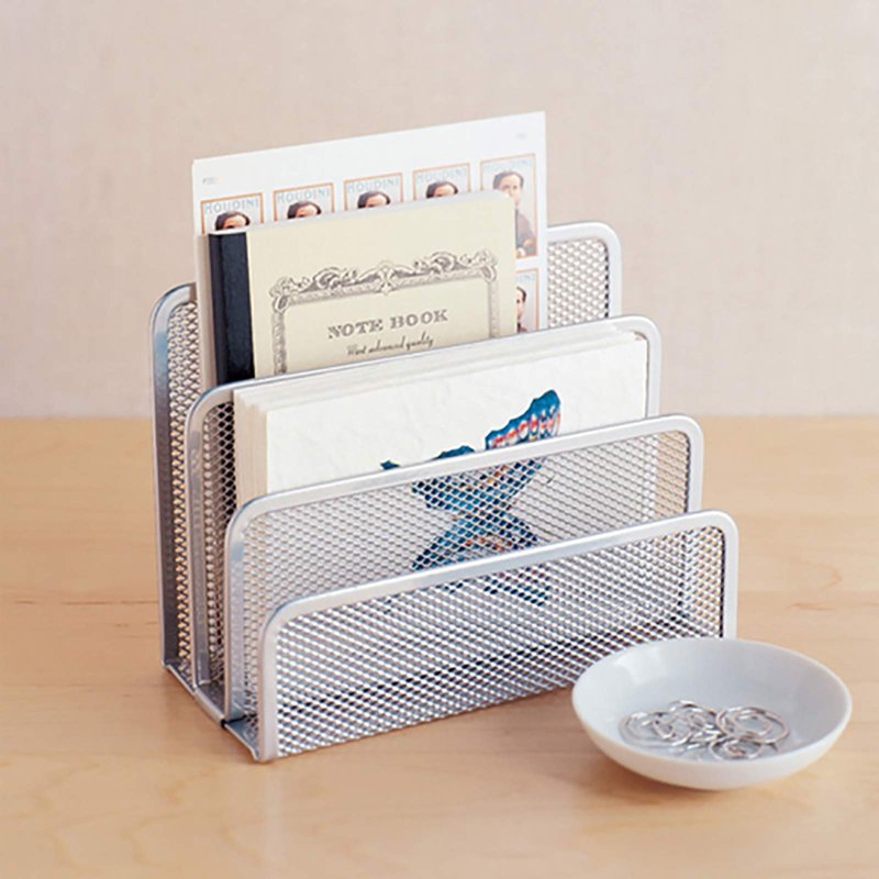 - 3 slots Desktop Mail Sorter help to keep your desktop organized and clutter-free. Instant storage for letter, paper, business card, document, notepad, envelope, bill and more.
