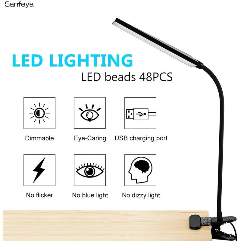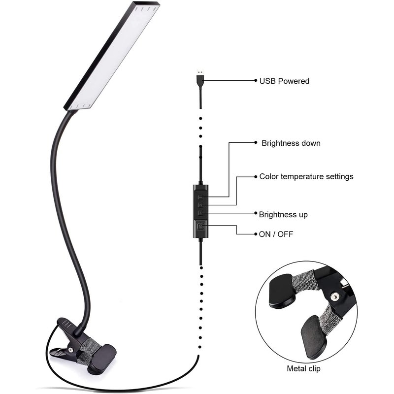- 👍【Easy to use】The Clip desk lamp with USB power and switch control cable, you can easy to plug into any available USB port to power the lamp, such as computer, laptop, power socket, power bank & USB adapter.And switch by simply pushing the buttons on the USB cable, super easy & not complicated even for elderly or kids.