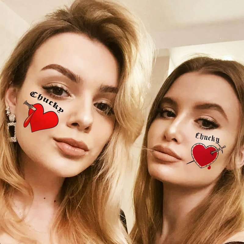 - 💕【25 PCS Bride of Chucky Tattoo Heart For Women Girls Adults】--VANTATY 3D Realistic Red Love 3D Tiffany Chucky Heart Temporary Tattoos For Adults Women Kids Men Adults Girls Body Art Stickers Look Real! 【Click Our Store/Brand Name To See More Fashion Designs】Prison Prisoner Gothic Inmate Rapper Tattos Tiffany Costume Bride Of Chucky.