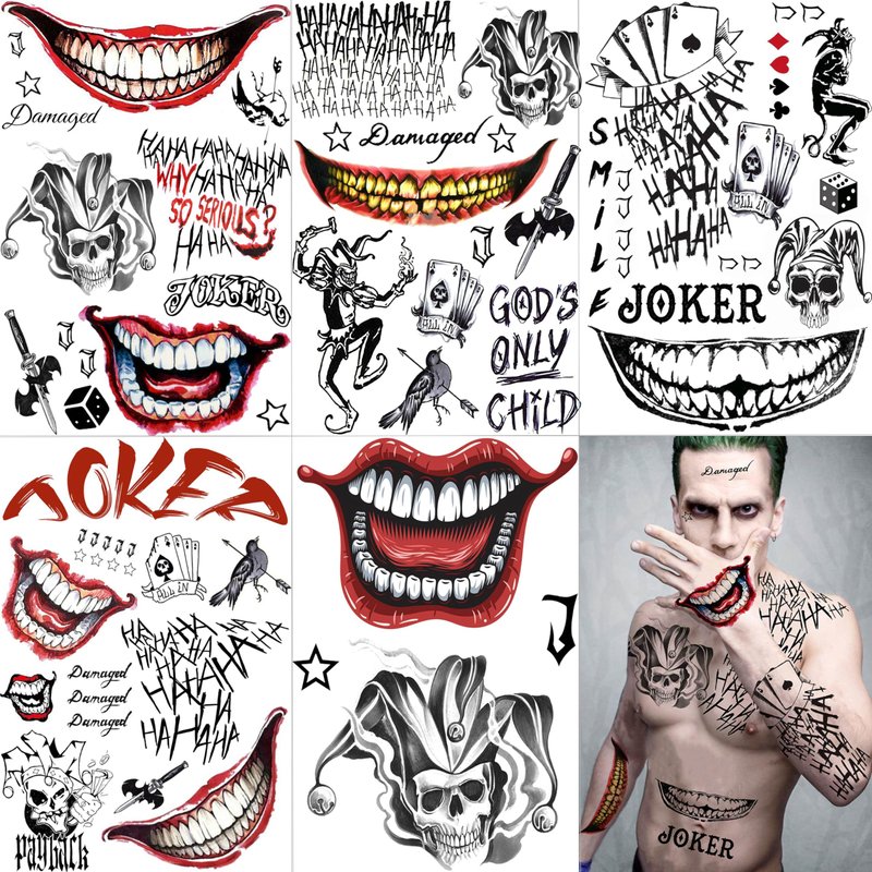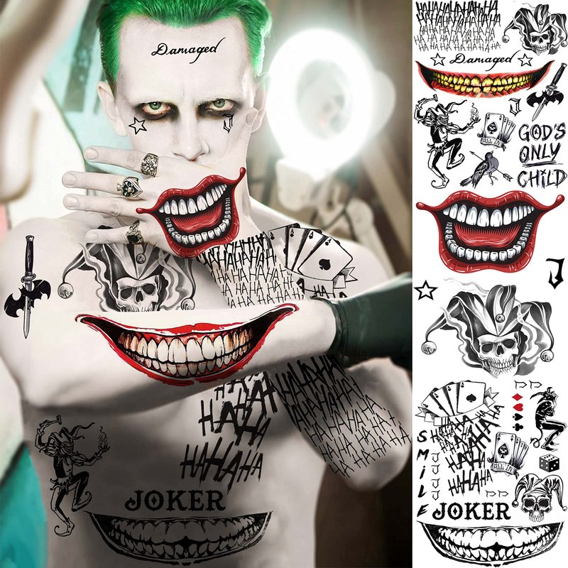- 💕【Size】--5 Sheets Joker Tattoos For Men Kids Boys Girls with Halloween Tattoos Temporary 8.2"x5.9"【 Fake Tattoos That Look Real and Last Long 】 Waterproof And Lasts Long Body From 3-5 Days.
