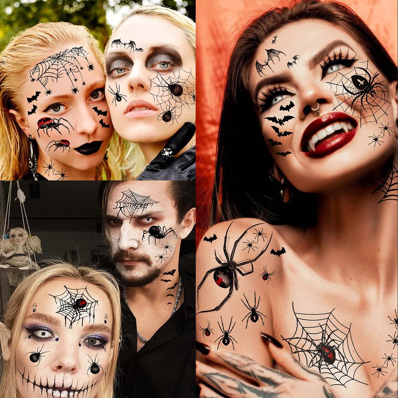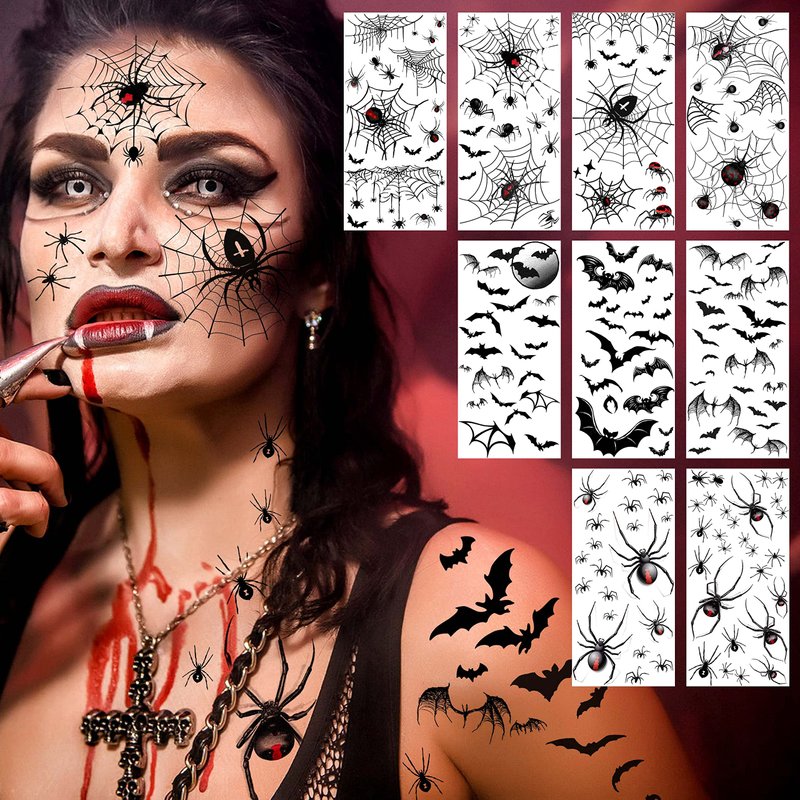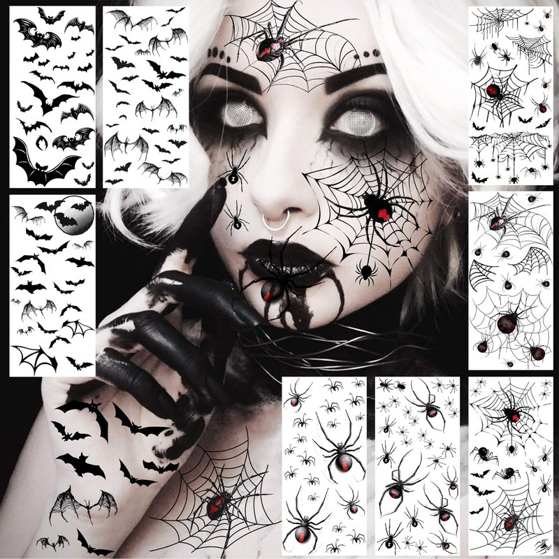 - 💕【9 Sheets Halloween Spider Web Temporary Tattoos Sticker For Women Men Adults】--VANTATY 3D Realistic Spider Face Tattoos For Adults Women Kids Men Adults Girls Body Art Stickers Look Real! 【Click Our Store/Brand Name To See More Fashion Designs】Fun Large Scary Spiderweb Bat Spider Sleeve Tattoo Cobweb Net Witch Makeup for Halloween Makeup Kit For Adults.