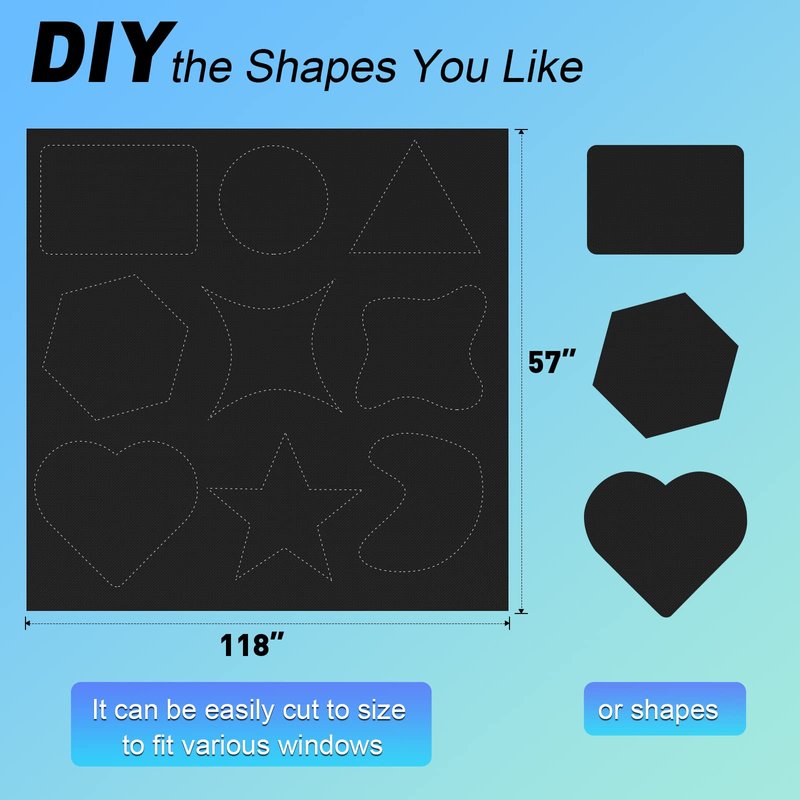 - 🌛[Free Size for Any Windows] 300x150cm (118”x58”), Don't worry if it doesn’t match your window, you can cut it into various shapes for different shaped windows; It is perfectly suited for doors, patio glass, small and large windows, can be used as vertical or horizontal blinds on any window film.