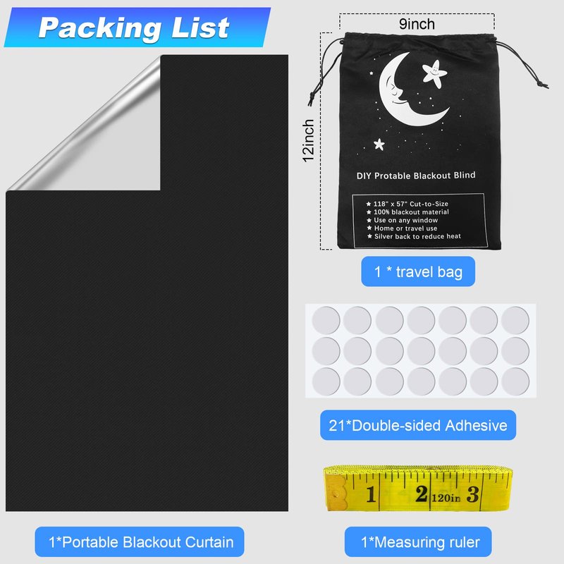Vanten 2024 Upgraded Portable Blackout Curtains, 118" x 57" Blackout Shades, 100% Blackout Material with Adhesive Tapes, Temporary Blackout Shades for Baby Nursery, Bedroom, Living Room, Travel