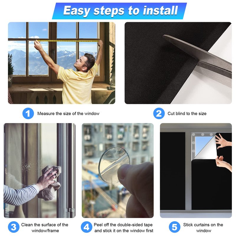- 🌛[Wide UASGE SCENARIOS] The ideal baby and kids' bedroom accessories for nursery, kitchen, bedroom, bathroom, or car journeys. Use stick-on blinds when traveling as temporary black out shade or kids' curtains at home. Applies the tape to any part of the window or frame to get instant black-out curtains.