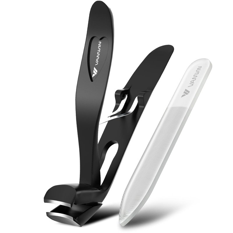 VANWIN Angled Head Nail Clippers for Seniors, Ergonomic Toenail Clippers for Thick Nails with Wide Jaw Opening, Premium Steel Nail Cutter Nail Clippers with Catcher for Men and Women Black