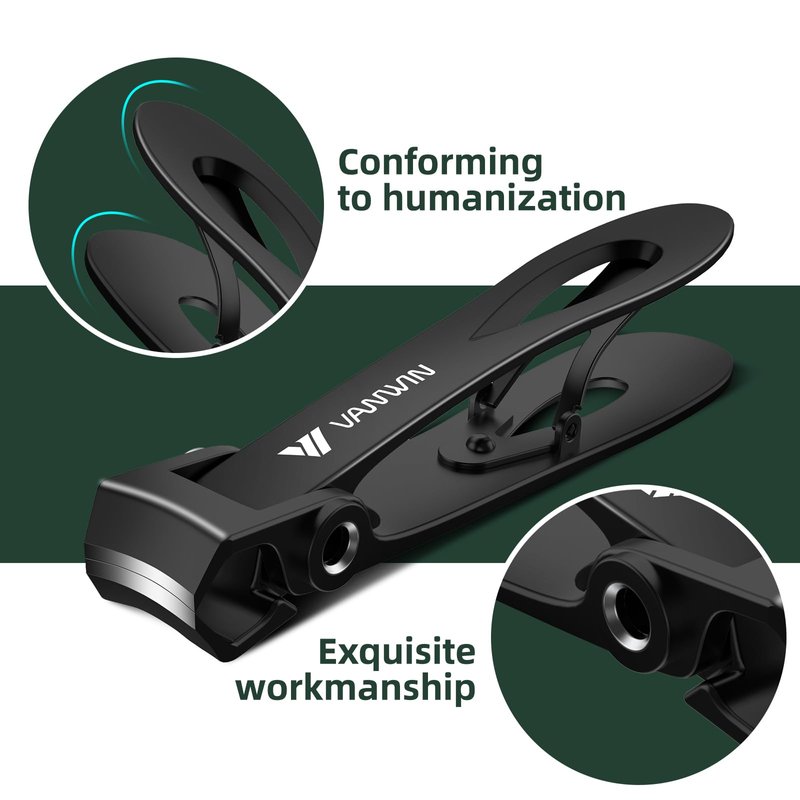 VANWIN Nail Clippers for Men, 2024 New Wide Jaw Toenail Clippers for Thick Nails for Seniors, Angled Head Toe Nail Clippers with Catcher, Ultra Sharp Nail Cutter Fingernail Clipper for Women Black