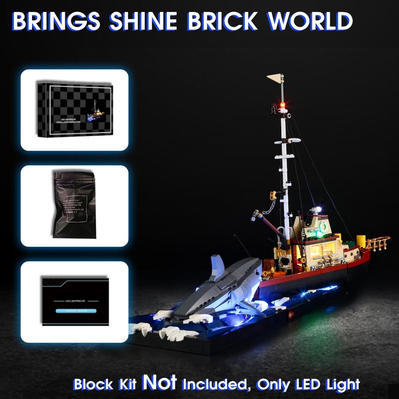 Vaodest Led Light for Lego 21350 Jaws Building Blocks Model,Design and Configuration Compatible with Model 21350(Led Light Only, Not Building Block Kit)