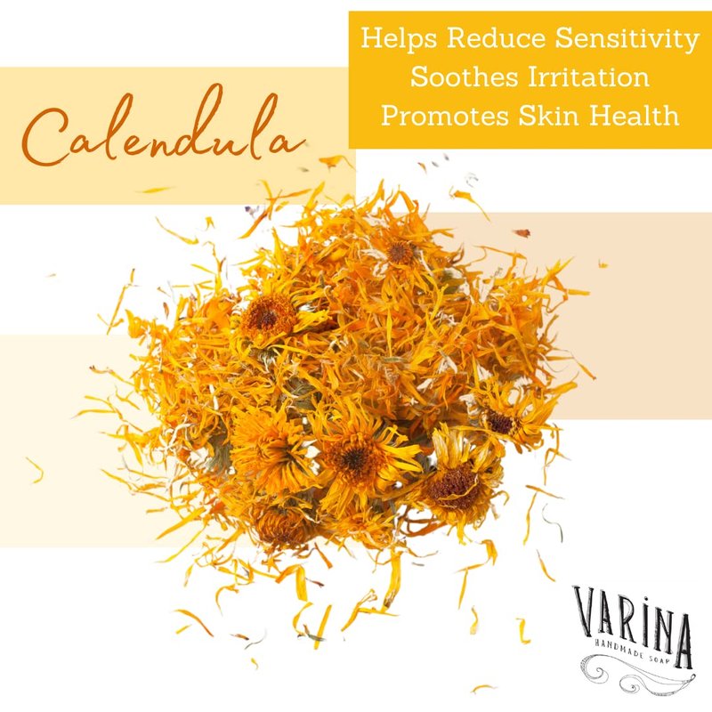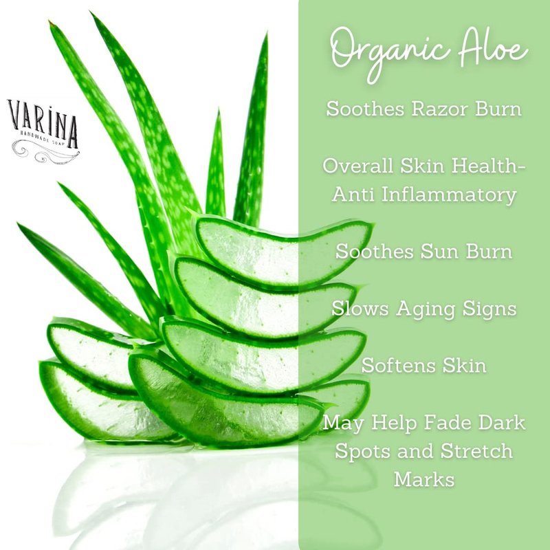 Aloe has been widely known for its ability as a soothing and healing agent for damaged skin. Calendula flowers are known for their ability to help in the healing process of bruises, scratches and even varicose veins. Our aloe and calendula is loaded with aloe concentrate for maximum aloe in every bar. Though this handmade soap contains calendula flowers, it has only a natural subtle herbaceous aloe aroma, no fragrances or essential oils added.