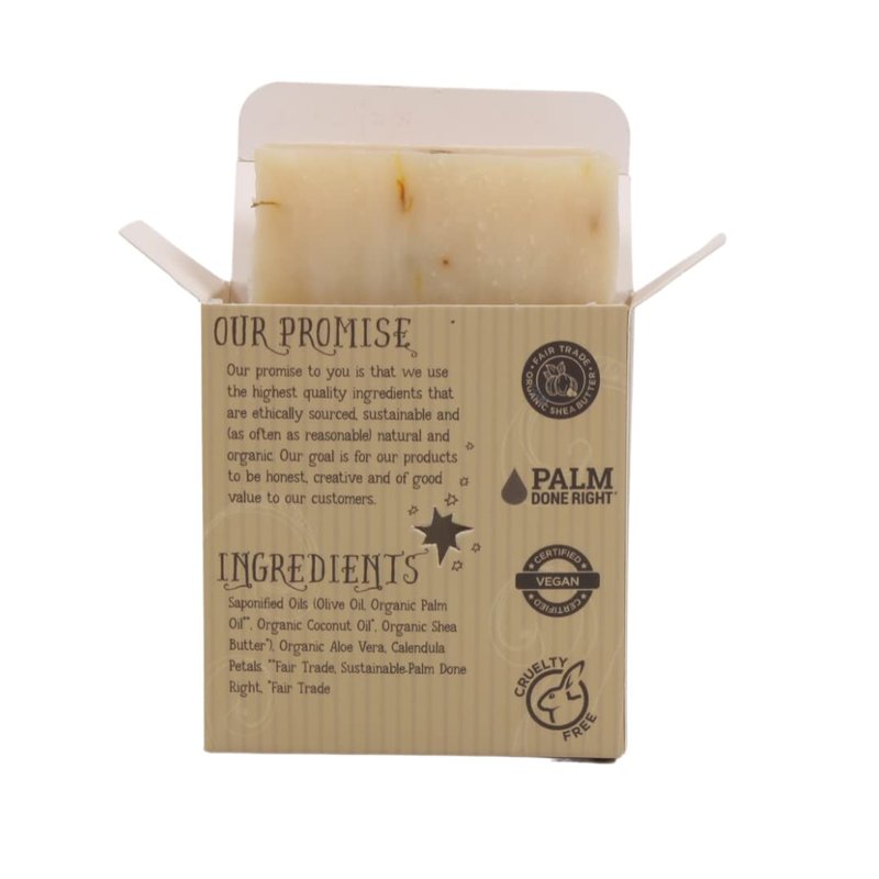 - Detoxify with Aloe Calendula Bar Soap: Gently cleanses, removes impurities and dirt, unclogs pores, and leaves skin feeling refreshed and renewed.