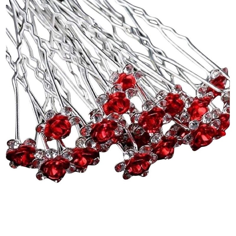 Various Beautiful Designs of Pearl/Crystals and Rhinestone Flower Hair Pins for Brides/Bridesmaids/Prom/Sweet Sixteen/Quinceanera/Weddings - Set of 20 (Red Roses)