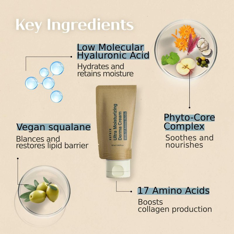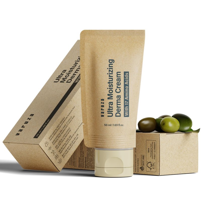 varuza Ultra Moisturizing Derma Facial Cream – Oil Free Deep Hydrating Face Moisturizer – Vegan, EWG Verified Product Korea Skin Care with Hyaluronic Acid, Amino Acids, Non-Sticky Unscented Lotion