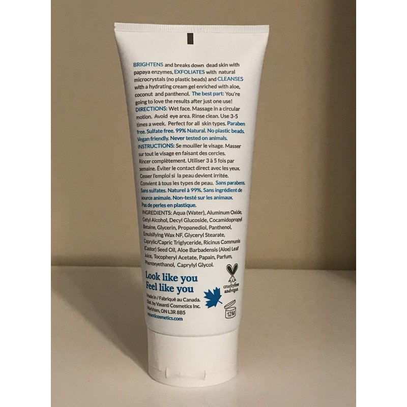 Vasanti Brighten Up! Enzymatic Face Rejuvenator Exfoliating Cleanser enriched with Papaya, Microcrystals and Aloe - 7.05 oz (200 g)